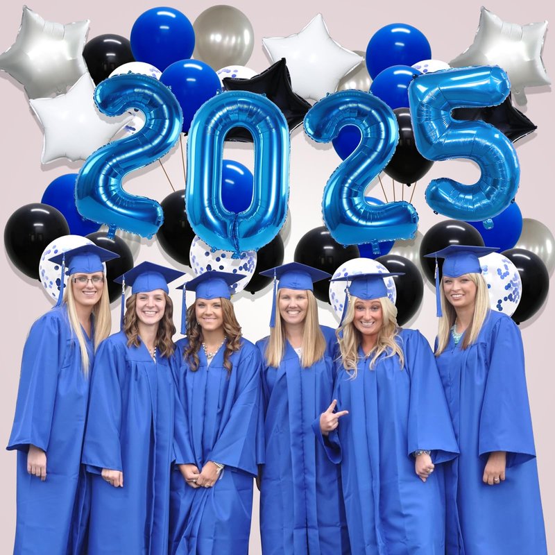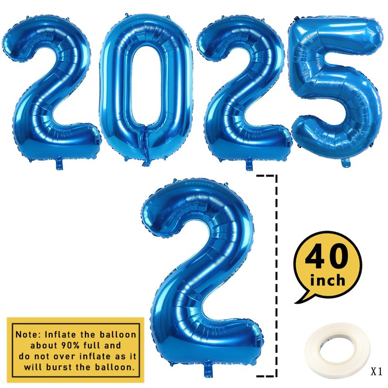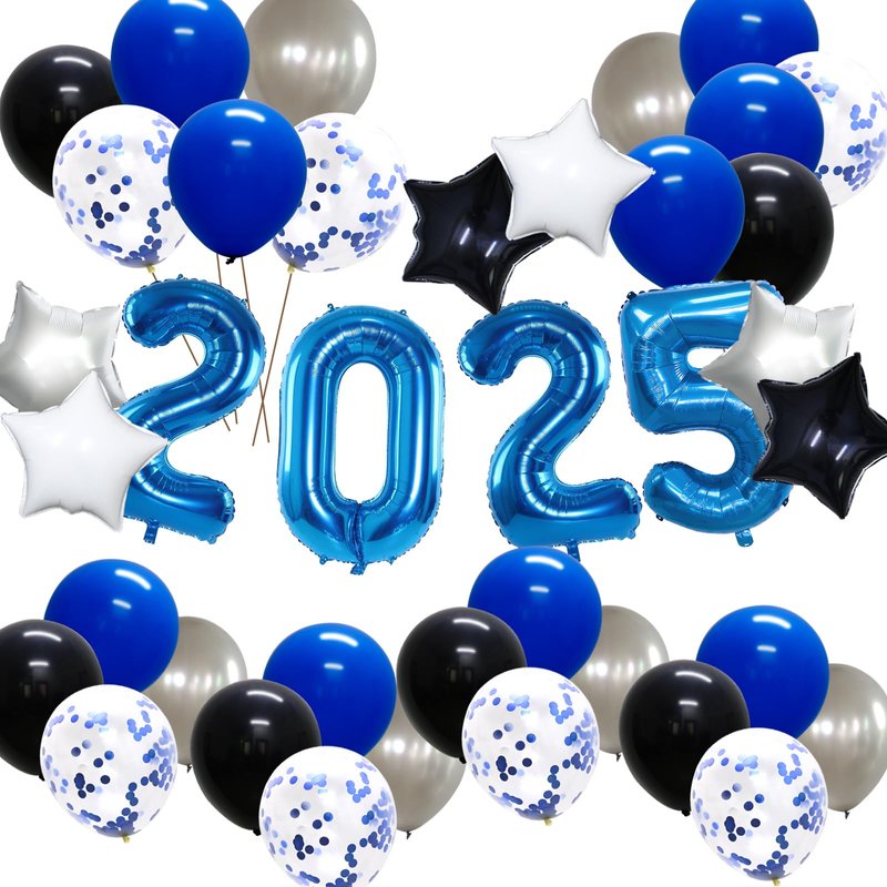 - What You Get - This elegant & beautiful 2025 balloons party decorations kit will create a festive ambiance for a perfect party of everyone's dream! Our 2025 decoration set includes: 1 set of 40 inch navy blue 2,0,2,4 foil balloons, 6pcs star foil balloons (white, black, silver), 6pcs 12inch silver latex balloons, 6pcs 12inch black latex balloons, 9pcs 12inch navy blue latex balloons, 7pcs 12inch navy blue confetti balloons, 1pc balloon tie tool and 1pc glue points