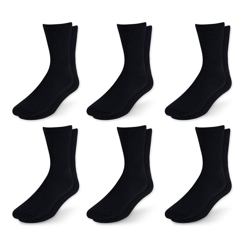 NEW YORK AVE Men's Diabetic Cotton Crew Socks - Loose Fitting Non-Binding Top Circulatory Cushion Bottom (Black 6 Pairs, 10-13)