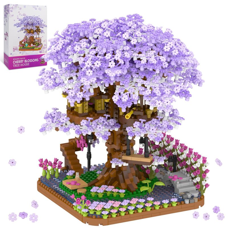 - đ¸ăExquisite Cherry Blossom Flower Building Setsă Made of 2200 pieces micro bricks, it is more challenging and difficult than the building blocks of traditional size, and requires more patience and carefulness. Hidden under the cherry blossoms is the tree house castle. Climb the stairs of the tree house and enjoy the beautiful scenery at the high platform in the middle of the tree. Suitable for adults and girls who love architecture building.