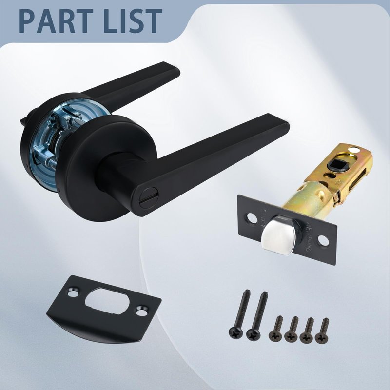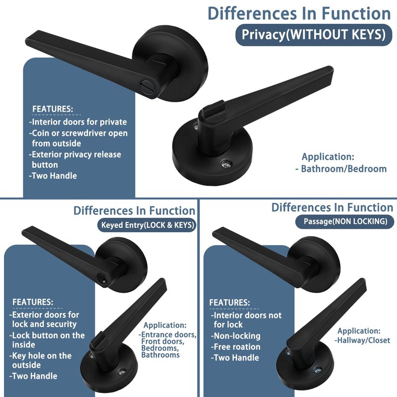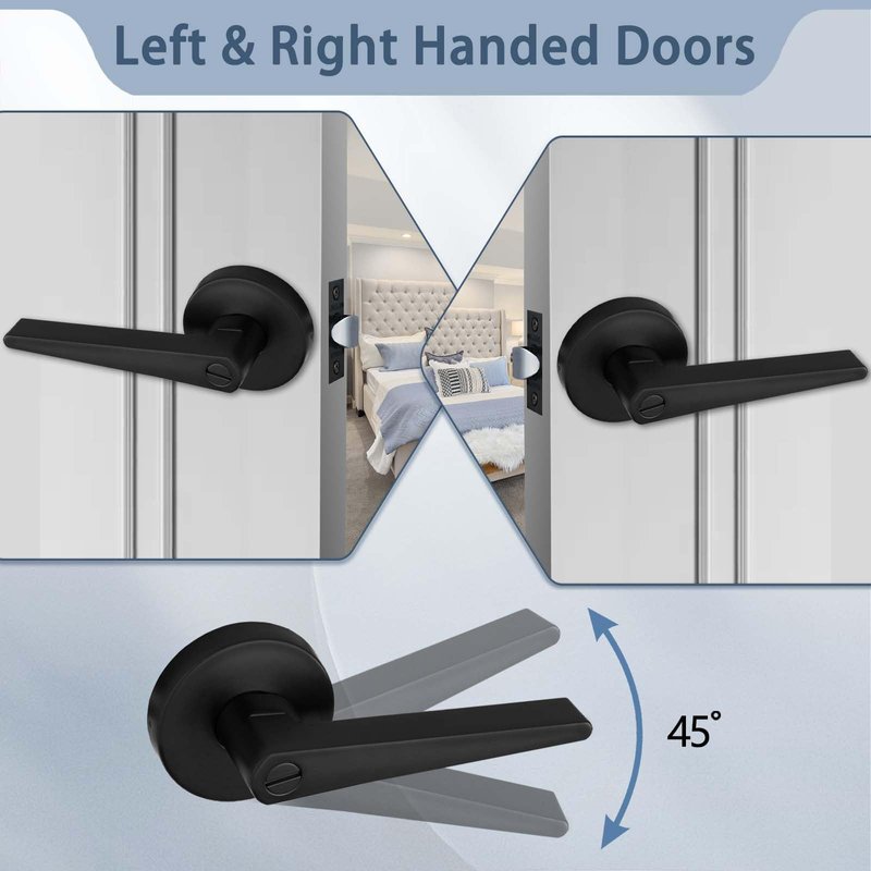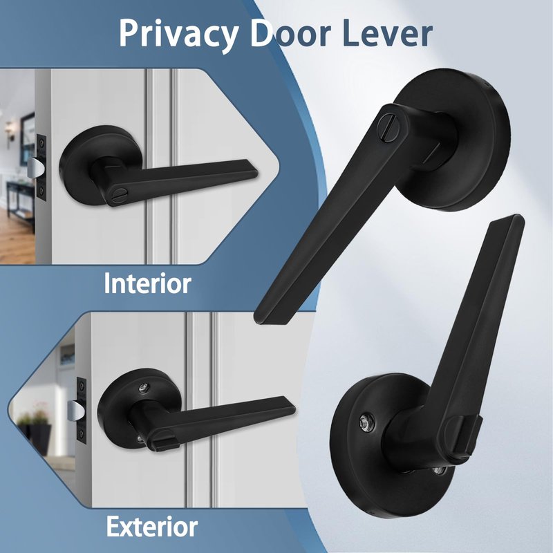 Black Door Lever for Bedroom & Bathroom Solid Privacy Door Lever with Matte Black Finish