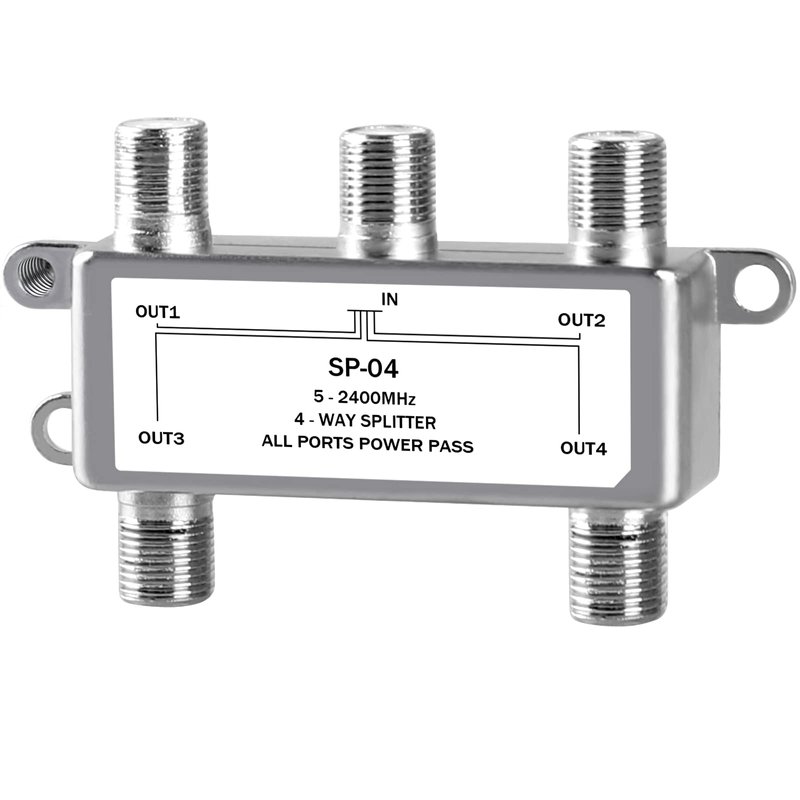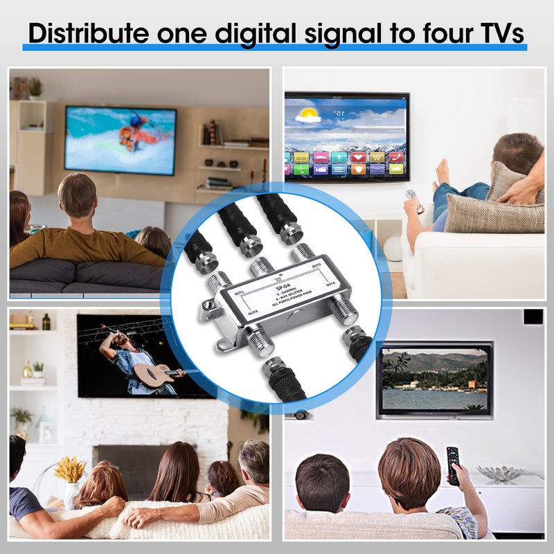 - EASY TO INSTALLATION: Our RG6 splitter 4 way adopts machine threaded F-Ports can realize smooth and safe cable installation. All coaxial ports of this TV signal RG6 cable splitter are power passing, make your satellite connection much easier.