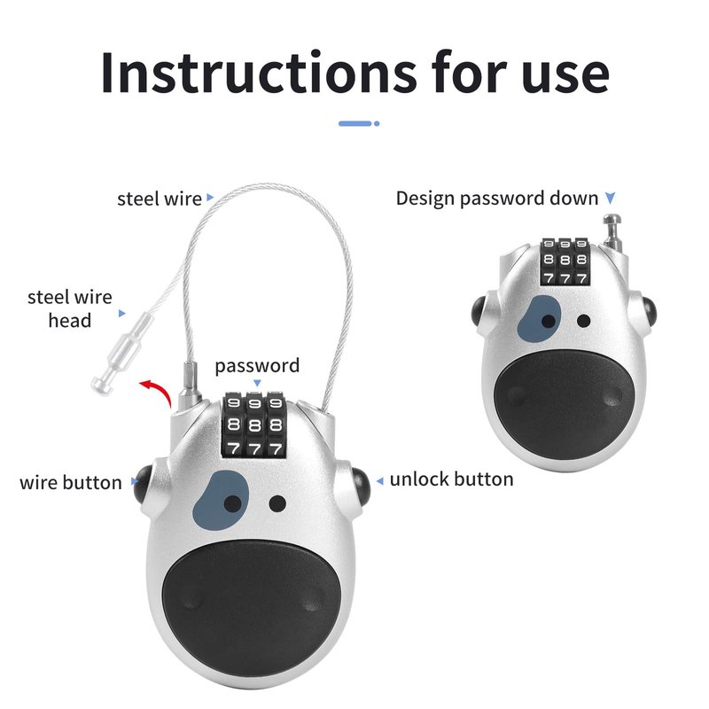 - LOVELY DESIGN:Lovely cow design and durable Reinforced ABS shell, the lock body and lock cylinder are made of high-quality materials, which are durable and corrosion-resistant.