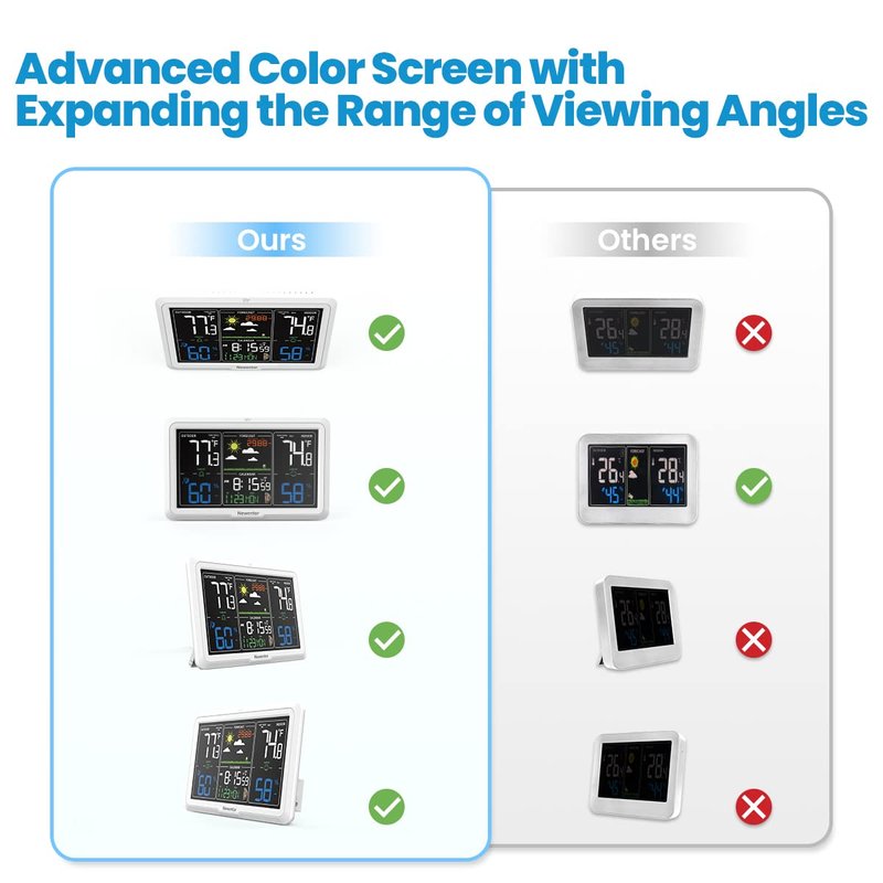 - [Comfort Indicator and Dressing Reminder] This indoor outdoor weather stations will remind you of the indoor comfort level and outdoor dressing index according to the detected weather conditions. In addition, it will also accurately detect the mold index, heat index and dew point to provide more information for your life, multiple health monitoring.