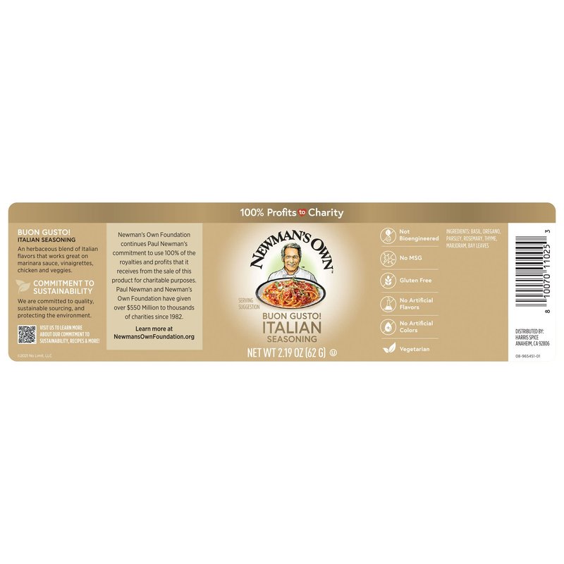 Newman's Own Buon Gusto! Italian Seasoning; Perfect Spices for Cooking Italian Bread, Pizza, Salads and Chicken, No MSG, Gluten Free, Non-GMO, Kosher; 2.19 Oz. Bottle