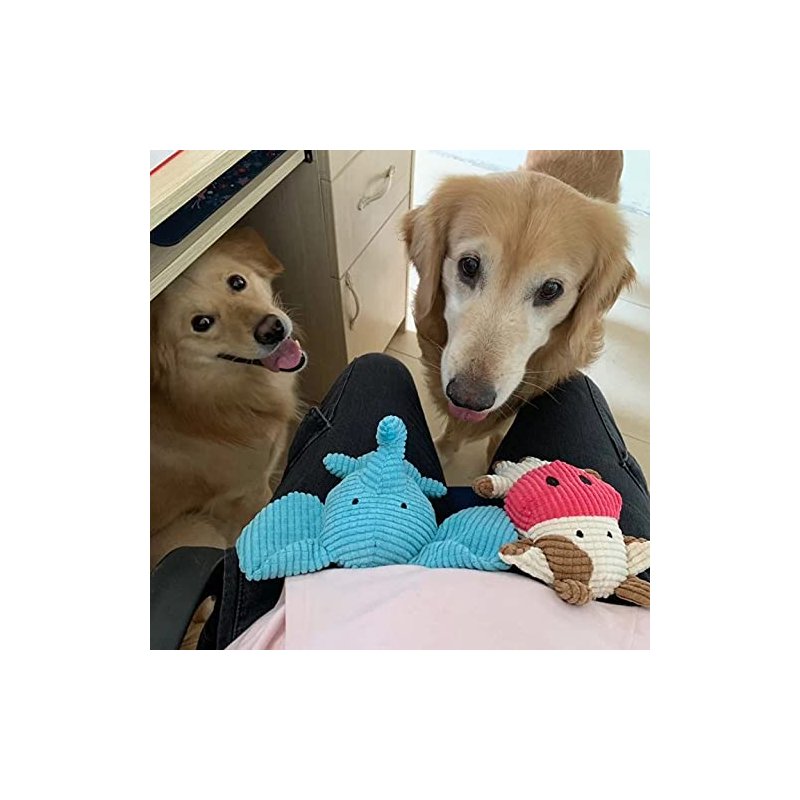 - 【Natural Teeth Cleaner】The corduroy bumps surface of dog squeaky toy is design for teeth-cleaning without hurting your dogs' gums. This is a good dog chew toy that can keep dog's teeth health. It's designed for durable chew from puppies, medium dogs.