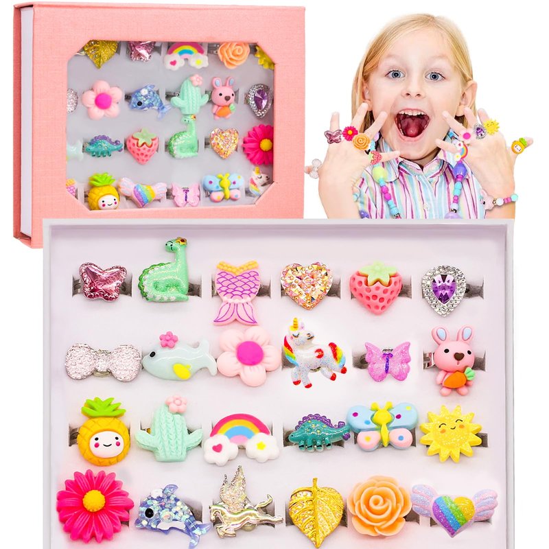 - 【Perfect Girl's Ring Toy Gift】: These princess rings rings come in a pink gift box. It’s good gift choose for little girls aged 3 to 12. The cute packaging can be applied for birthday party, gift bag fillers, party favors, party bags and holiday gifts like New Year, Christmas, Valentine's Day, Easter gift, Children’s day, tea party pretend play, carnivals, or classroom reward, graduation, goodie bags stuffers, girls party supplies.