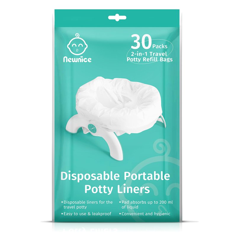 Newnice 30 Packs Potty Liners Disposable with 200ML Absorbent Pads, Travel Potty Refill Bags Compatible with OXO Tot, Portable Potty Chair Liners, Universal Training Toilet Seat Bags for Kids Toddlers