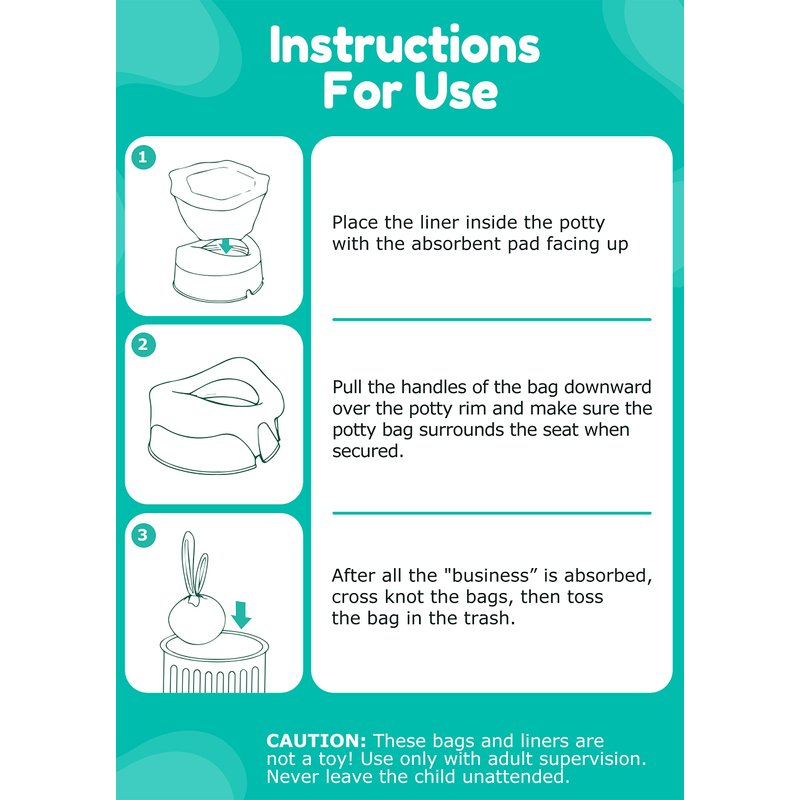 - LIFE SAVER! - When on the beach trip or a car road trip, if you can't find a restroom or avoid going to public restrooms with toddlers, these travel potty bags are good at helping them relieve, without leaks. After all the "business" is absorbed, parents can toss the bag in the trash. Save parents from washing the potties.