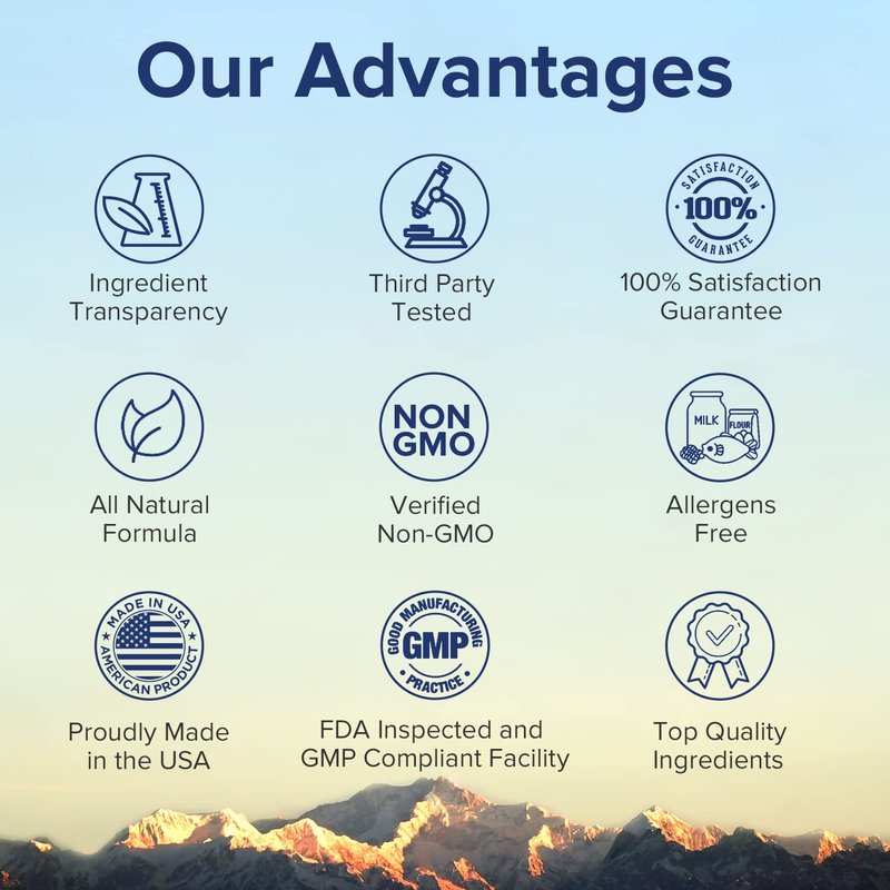 Contains NO Milk, Eggs, Fish, Shellfish, Tree nuts, Peanuts, Wheat, Soy, Corn, Gluten, Salt, Sugar, Yeast, Fillers, Magnesium Stearate or Preservatives.