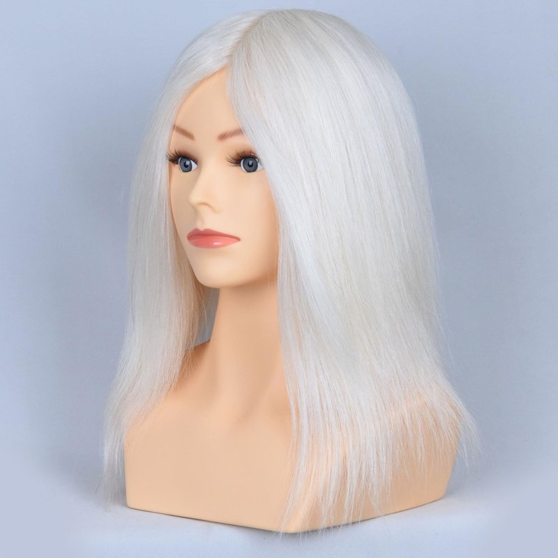 - HAIR MATERIAL: Mannequin head with real white hair, 12 inches 100% pure top quality real hair, all the hair has been chemically washed and disinfected, please rest assured to buy.