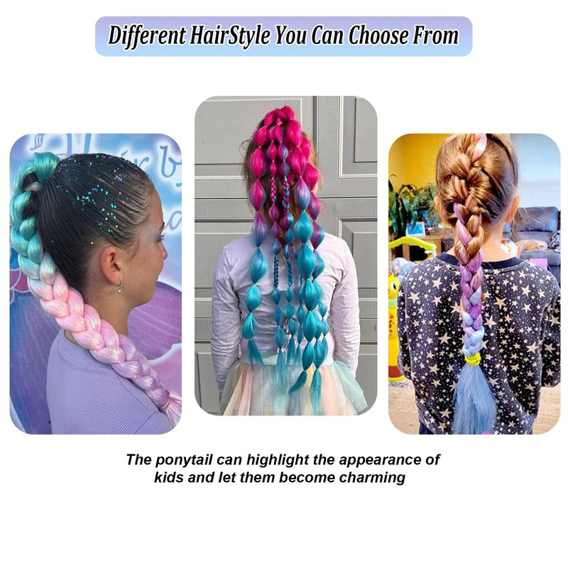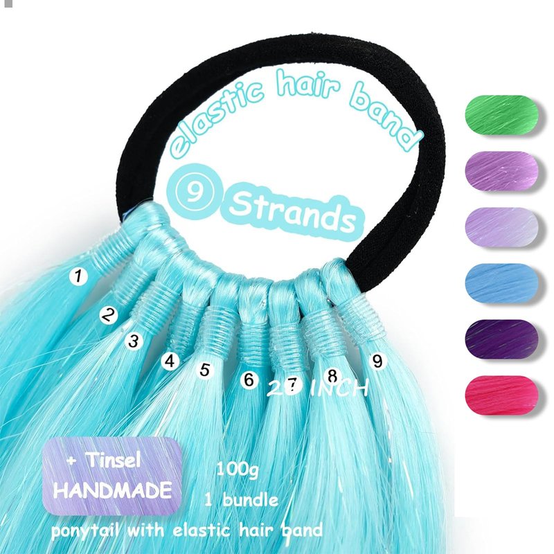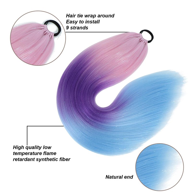- Easy to Use:The attached hair elastics make the ombre tinsel ponytail extensions so easy to wear. First tie the hair into a ponytail or a double ponytail , tie the ombre tinsel ponytail over your ponytail, and wrap it around the hair tie. Then braid your hair into braids or any other hairstyle you want.