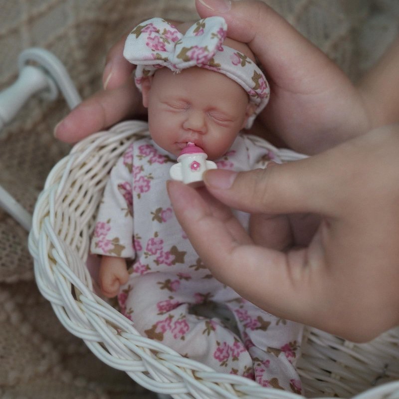 - 【Features】This is a mini reborn baby doll, anatomically correct girl. Size: 7 inch from head to toe, weighs 8.8 OZs, palm-sized, mini and portable; Eyes: can't blink; Washable, easy to care and maintain.