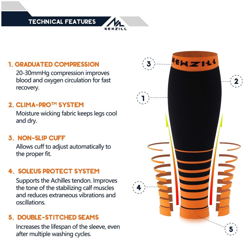 NEWZILL Compression Calf Sleeves (20-30mmHg) for Men & Women - Perfect Option to Our Compression Socks - for Running, Shin Splint, Medical, Travel, Nursing, Cycling (S/M, i-Black/Orange)