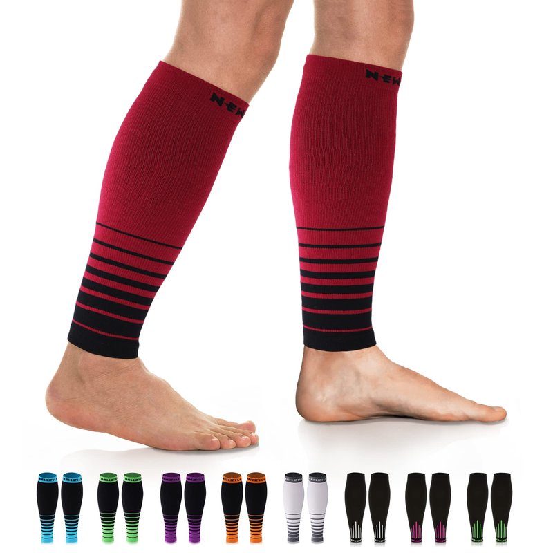 NEWZILL Compression Calf Sleeves (20-30mmHg) for Men & Women - Perfect Option to Our Compression Socks - for Running, Shin Splint, Medical, Travel, Nursing, Cycling (S/M, i-Black/Red)