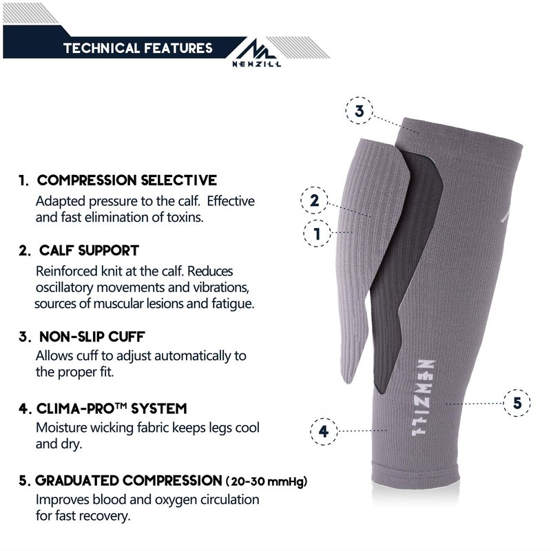 NEWZILL Compression Calf Sleeves (20-30mmHg) for Men & Women - Perfect Option to Our Compression Socks - for Running, Shin Splint, Medical, Travel, Nursing, Cycling (S/M, Solid Grey)