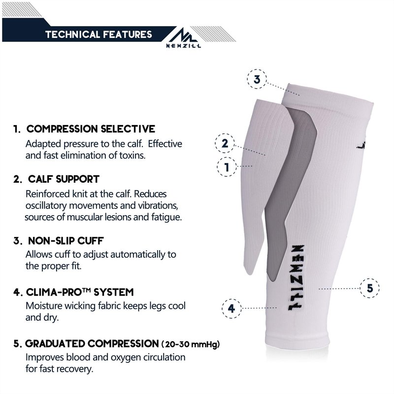 Newzill Calf Compression Sleeves are made of Durable, Breathable, Comfortable, Premium fabric made of high-grade Spandex (30%) and Nylon (70%) and for a snug, comfortable, compressive fit. The sleeves aid in faster recovery for improved performance and support. By boosting blood circulation in your legs and preventing injuries, the sleeves allows you to feel fresher for more activity.