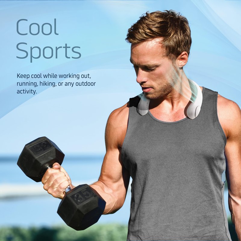 - WEARABLE FAN TO COOL ANYWHERE. This Neck Fan will give you the ultimate cooling experience anywhere and anytime, this fan is smooth and quiet operating, made of quality and comfortable material, which gives you a modern leafless neck fan. This has 48 double turbo air outlets with 3-speed airflow options.