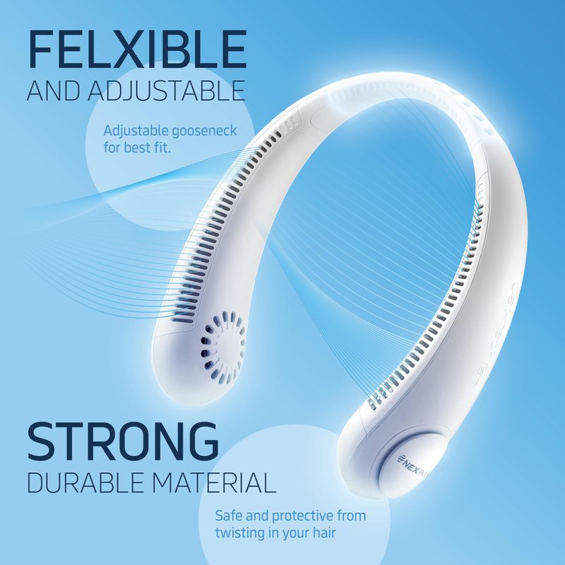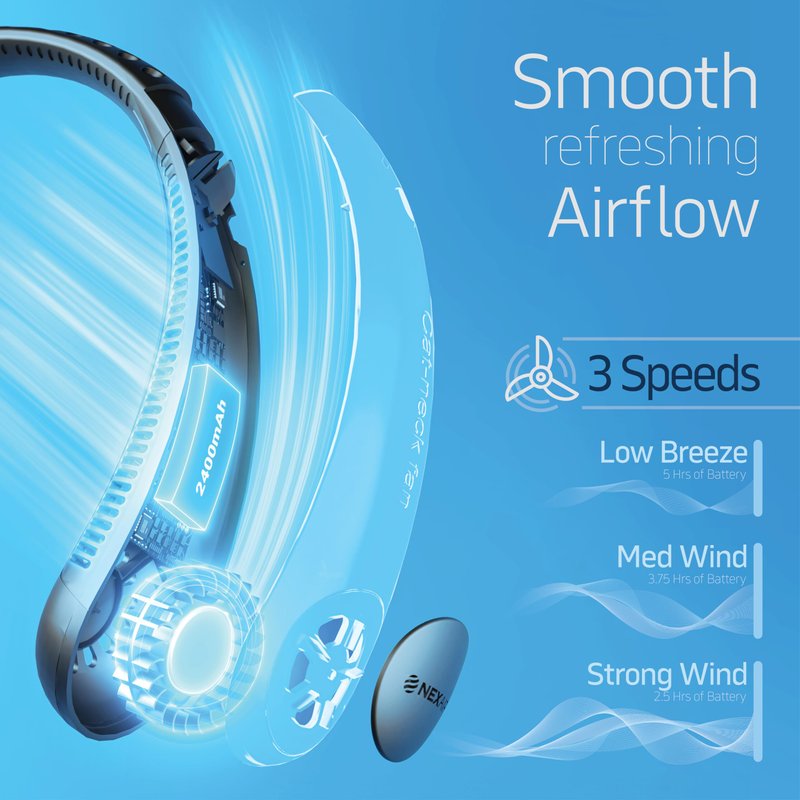 NEXAIR Portable Neck Fan - 3 Speed Rechargeable Bladeless Neck Fan, Adjustable Personal Neck Fan For Women & Men Modern Design, Great Cooling Fan For Travel, Outdoors & Sports