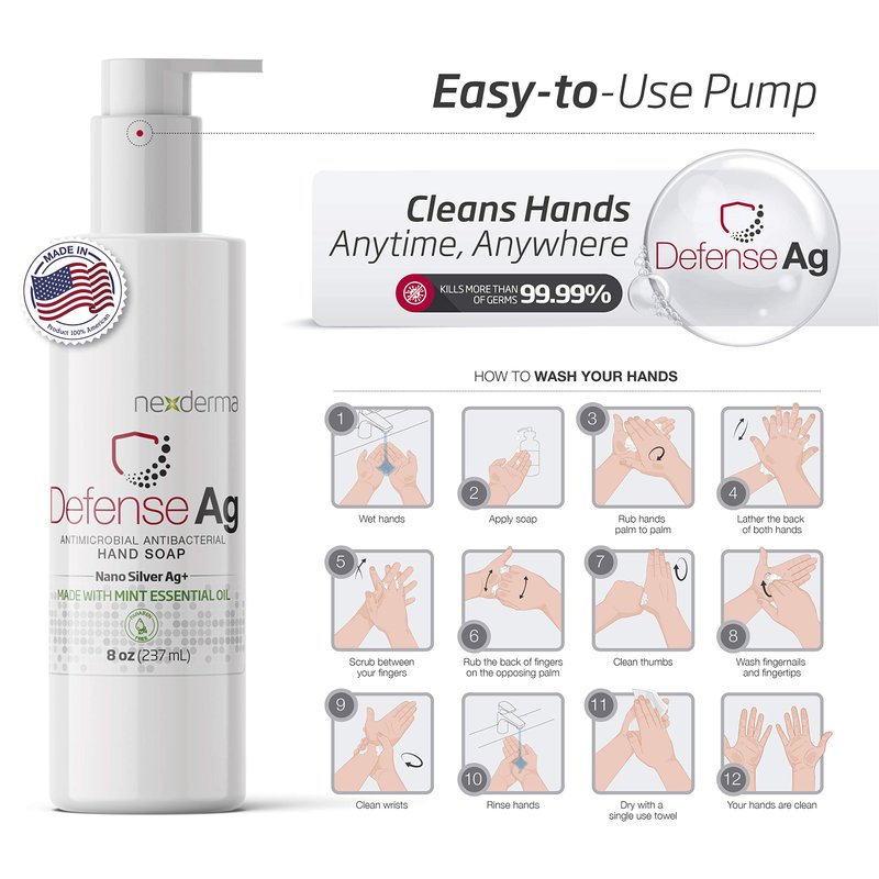 NEXDERMA Defense Ag Hand Soap with MINT Essential Oil | Paraben free Moisturizing Everyday Hand Soap | Multipack - 8 Oz (236ml Each) - Pack of 4