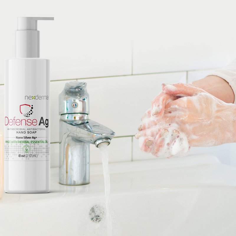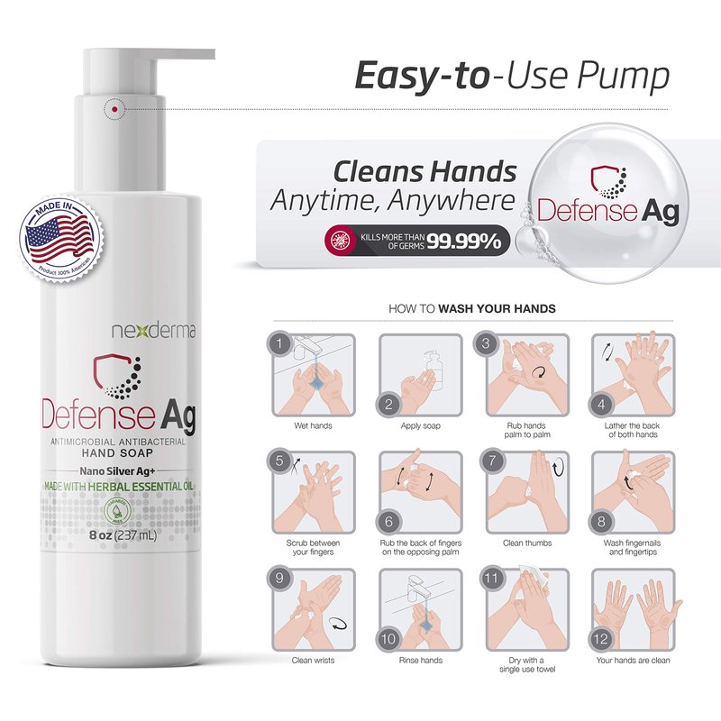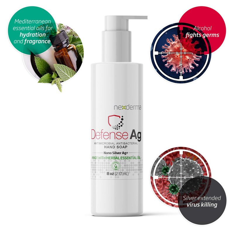 NEXDERMA Defense Ag Hand Soap with Goodness of Silver, Oat Extracts, Vitamin E, Coconut Oil & Herbal Essential Oil | Paraben free Moisturizing Everyday Hand Soap - 8 Ounce (236ml)