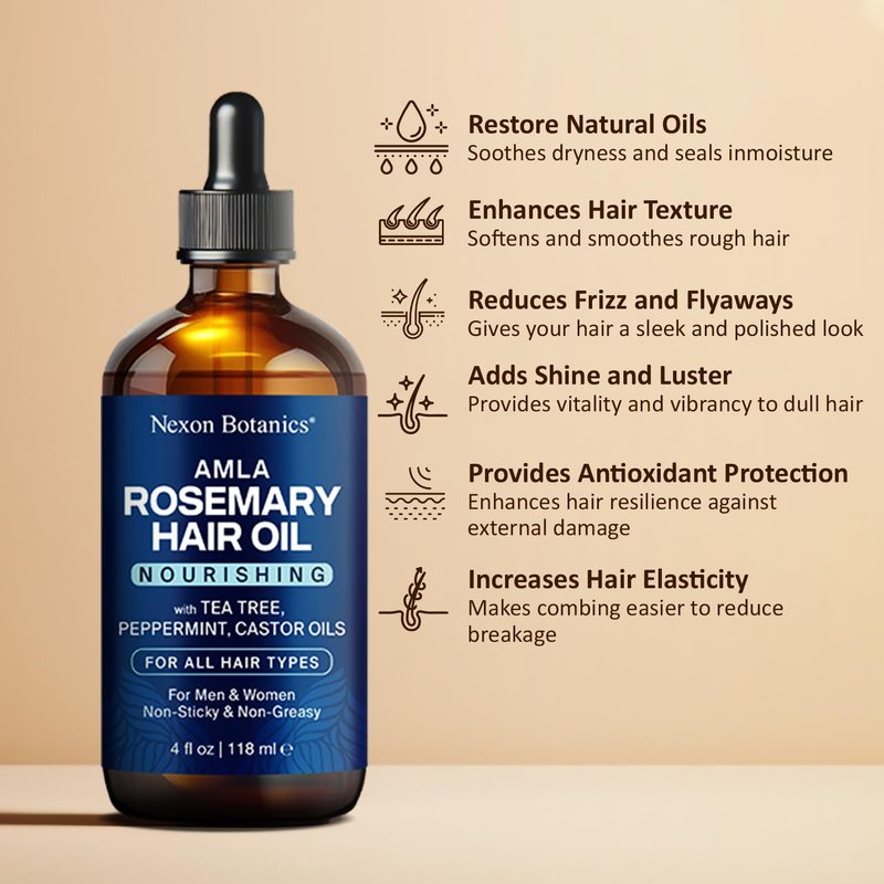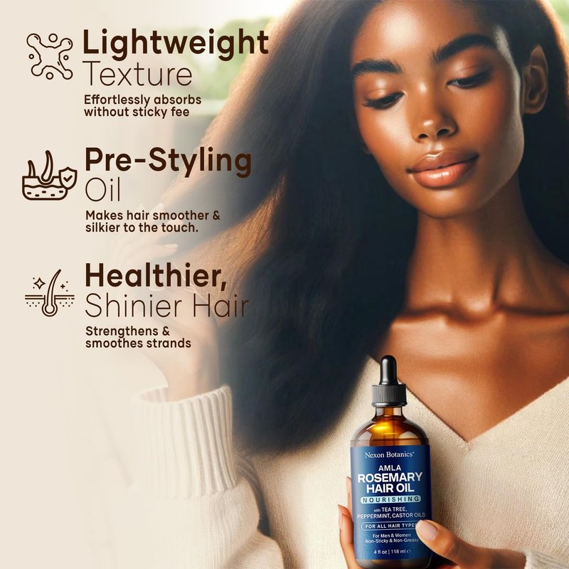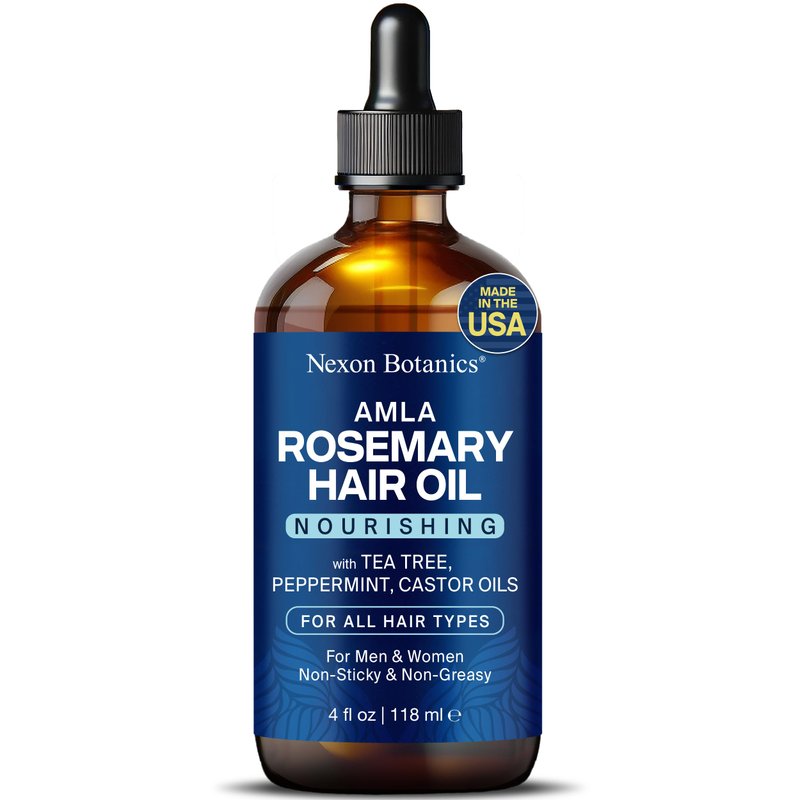 Nexon Botanics Amla Rosemary Hair Oil 4 fl Oz - Nourishing Rosemary Oil for Hair Growth - Mint, Castor, Tea Tree - Hair Growth Oil for Damaged Hair, Curly Hair, Frizzy Hair, Dry Scalp - Men, Women