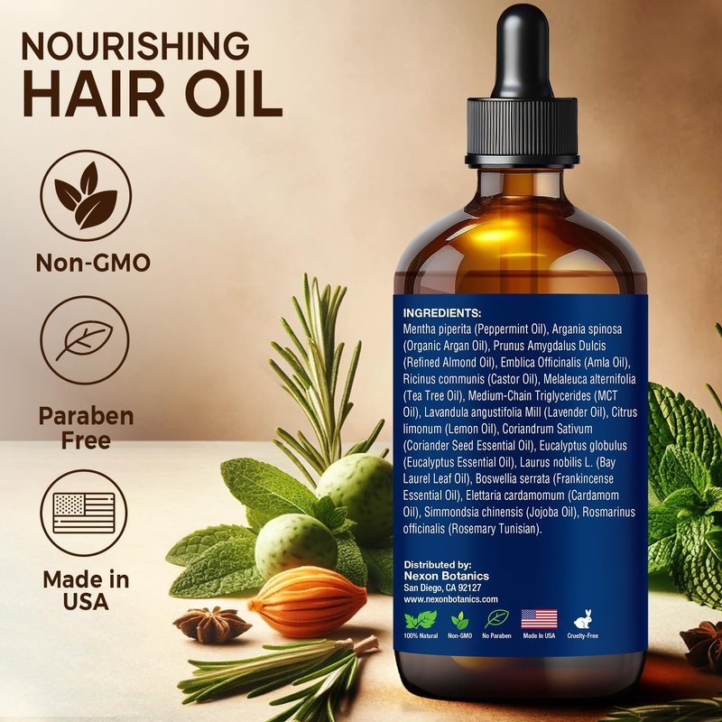 - Peppermint oil for hair: Formulated with Amla, Rosemary, Castor, Argan and Almond oils that are rich in vitamins and antioxidants to promote hair health. Great hair oil for damaged hair.