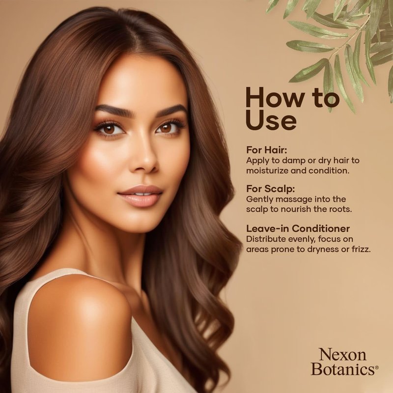 Our Premium Nourishing Hair Oil is crafted with a potent blend of natural oils including almond, amla, argan, and castor. This luxurious and lightweight hair oil is designed to replenish and revitalize your locks from root to tip. Infused with oils having a rich array of vitamins and antioxidants, our natural hair oil penetrates deeply into the hair shaft, delivering intense hydration and essential nutrients to promote optimal hair health. This hair oil treatment absorbs quickly without leaving behind any greasy residue, making it suitable for all hair types. With continued use, experience hair that's not only more manageable and resilient but also visibly thicker, fuller, and more vibrant. Nexon Botanics Nourishing Hair Oil improves the appearance and texture of your hair. It also provides a multitude of benefits for your scalp. Use our hydrating hair oil to soothe scalp irritations, dryness, and itchiness for improved hair vitality. We ensure that our dry hair oil is formulated without harsh chemicals like sulfates and parabens, and it is gentle enough for daily use. Whether you use it as a leave-in treatment, overnight mask, or as a finishing touch to your styling routine, our Nourishing Hair Oil is your ticket to hair that looks and feels its absolute best, every day.