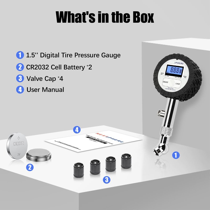 - 【RELIABLE SUPPORT】 Each NexSphere tire pressure gauge is strictly tested for quality and performance. Backed by a responsive support team and a 2-year manufacturer warranty, it’s a compact and dependable tool for maintaining optimal tire pressure