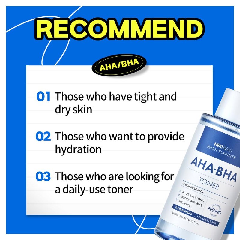 NEXTBEAU Wish Planner AHA/BHA Peeling Toner [6.76 fl.Oz / 200ml] AHA/BHA, Facial Toner,Treatment Toner,Korean Skin Care,Hydrating,Peeling Toner
