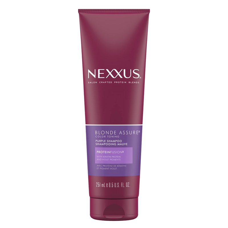 - PURPLE SHAMPOO TO BALANCE BRASSY TONES: Nexxus Blonde Assure Purple Shampoo for blonde, silver, or platinum hair helps neutralize brassy tones and provide long-lasting color care & color vibrancy