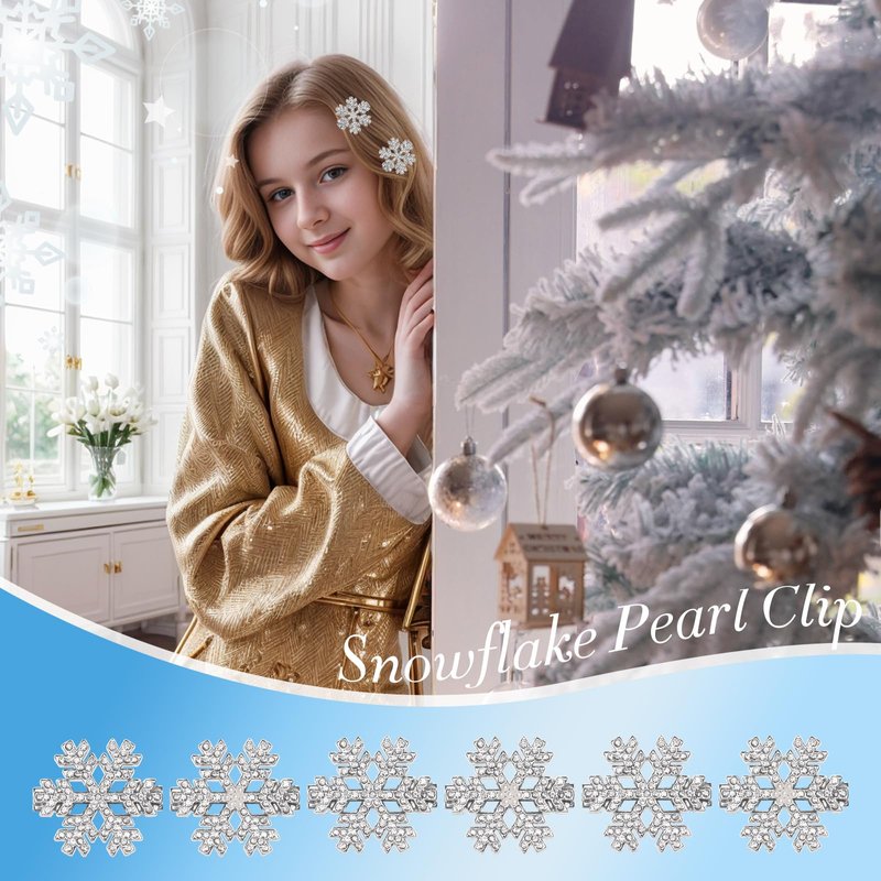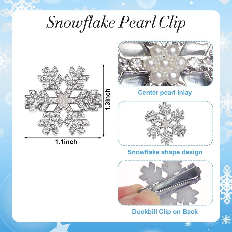 - What’s Include:You're going to receive two sets of different styles of snowflake hairpins. One set is sparkling silver snowflake clips, and the other set is snowflake clips with 6 pearls added to each. There are 6 pins in each set, making a total of 12 Christmas decoration clips.