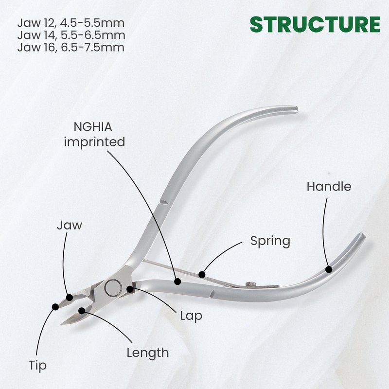 - JAW 14: The JAW 14 can perform deeper cuts and because it has a longer blade, it excude enough strenth to cut regular finger nails as well. The blades are shorter, allowing it to perform more shallow cuts. This jaw size is best used for beginner and less cuticle nails.
