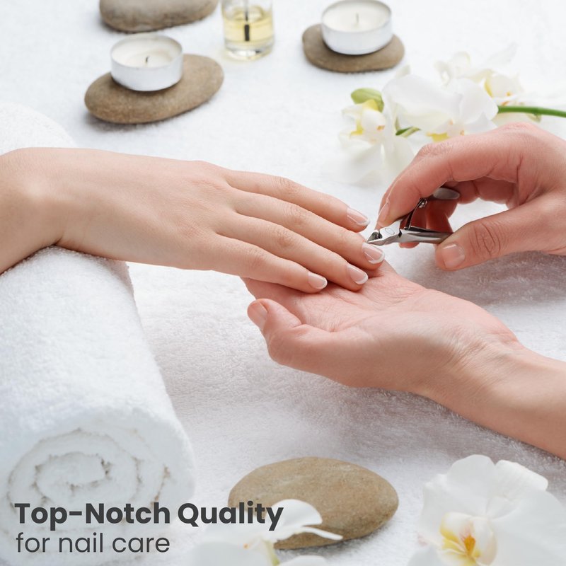 Introducing our premium Cuticle Nipper – the ultimate tool for achieving flawless nail care and maintaining immaculate cuticles. Crafted with precision and designed for comfort and support, our Cuticle Nipper is an essential addition to your grooming routine. Our Cuticle Nipper features sharp, surgical-grade blades that effortlessly trim excess cuticles with utmost precision. Achieve clean and well-defined nail edges for a polished look. Designed with your comfort in mind, the ergonomic handle provides a secure grip, reducing hand fatigue during use. The smooth, easy-to-hold design ensures steady control for accurate cutting. Crafted from high-quality stainless steel, our Cuticle Nipper is built to last. The rust-resistant material ensures long-term performance and easy maintenance. Each Cuticle Nipper comes with a protective cap for safe storage. This cap not only ensures the longevity of the sharp blades but also guards against accidental nicks and cuts when not in use. Beyond cuticle care, our nipper can also be used for precision tasks such as removing ingrown nails or trimming hangnails, making it a versatile tool for your nail care routine. Whether you're a professional nail technician or a DIY enthusiast, our Cuticle Nipper guarantees salon-quality results from the comfort of your home. Compact and lightweight, the Cuticle Nipper is perfect for on-the-go touch-ups. Slip it into your makeup bag or travel kit to maintain well-groomed nails wherever you are.