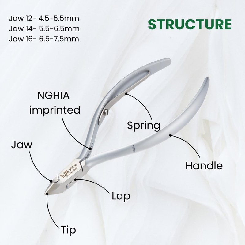 - JAW 16: The JAW 16 of the cuticle nipper is sharpened by highly skilled machinists and goes through many quality checks to ensure consistency and avoid defects. The finely hand-filed ultra-thin eagle mouth-shaped blades are guaranteed to cut through the skin surface perfectly.