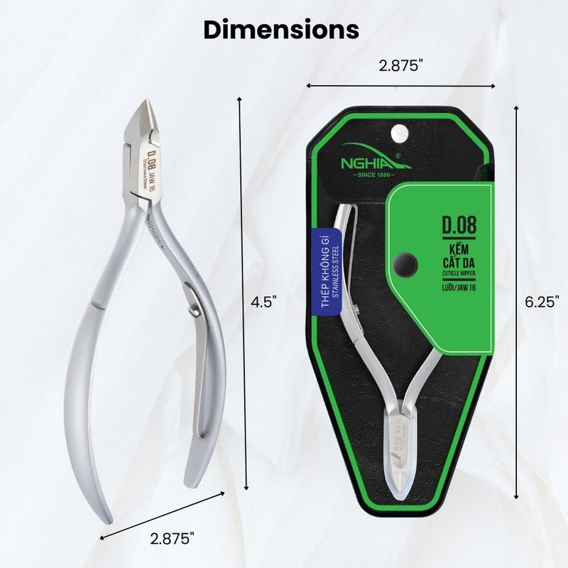 NGHIA Cuticle Nipper - D-08 JAW 16 | Stainless Steel | Durable and Sharp | Ergonomic Design | Grey Plated | Ideal for Salons and Home Use