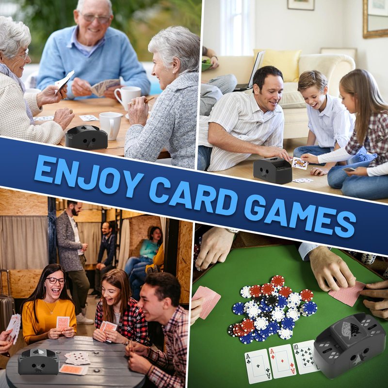- Enjoy Card Games:The fully automatic card shuffler gives you a relaxing and comfortable card playing experience, perfect for people who don't like to shuffle cards manually or for older people who can't easily shuffle cards. It is ideal for card games!