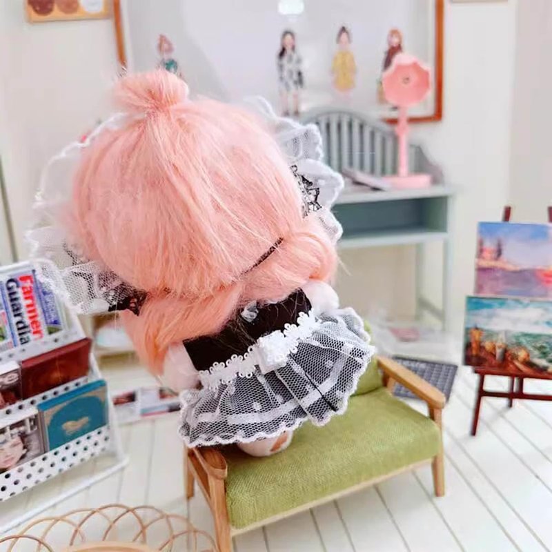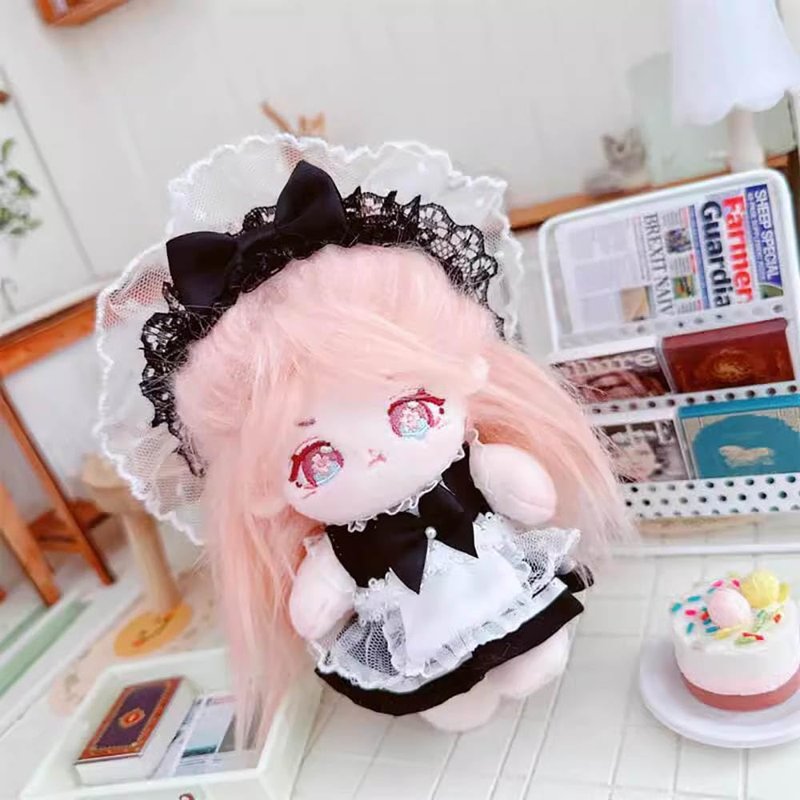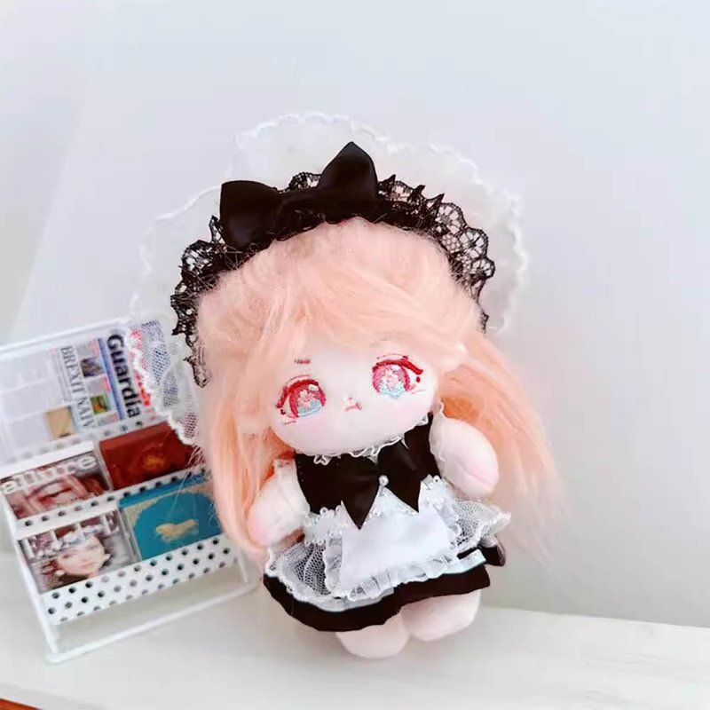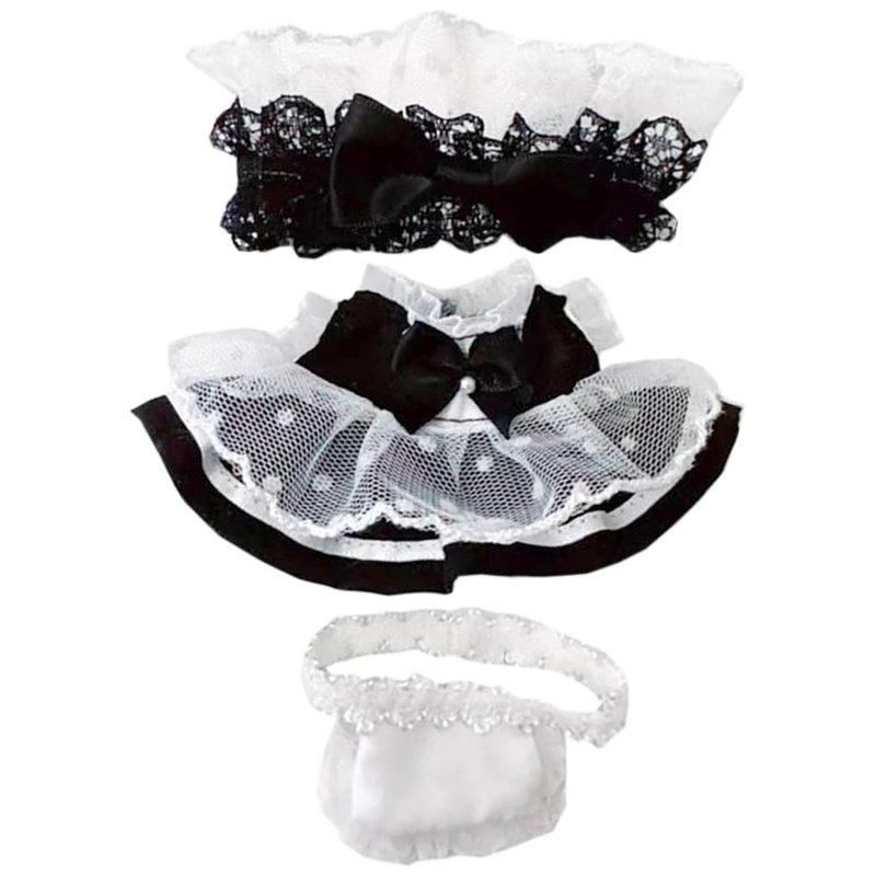 niannyyhouse 10cm Plush Doll Clothes Headdress Dresses Apron Black White Maid Outfit Dolls Dress Up Accessories
