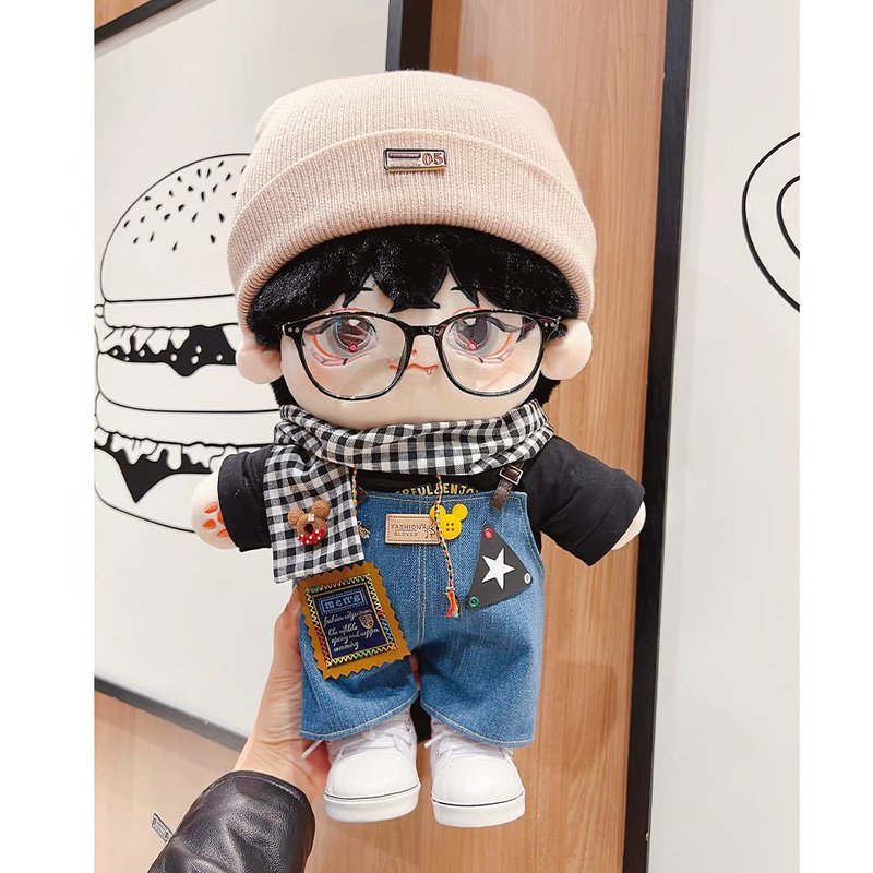 niannyyhouse 20cm Plush Doll Clothes Black Forest Set Knitted Cap Scarf Glasses Hoodie Overalls Doll Accessories Dress Up (20cm)