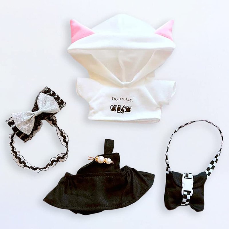 niannyyhouse 20cm Plush Doll Clothes Headband White Hoodie Black Strap Dress Backpack 8in Doll Clothing