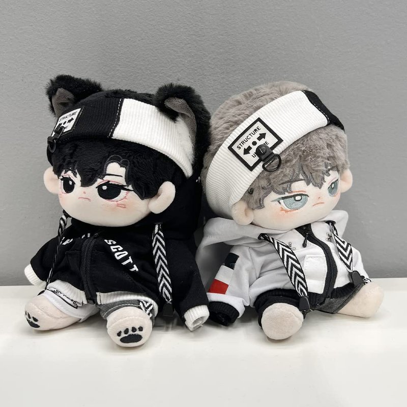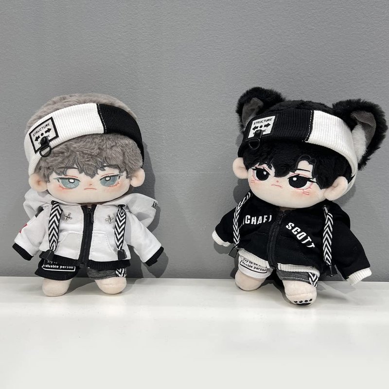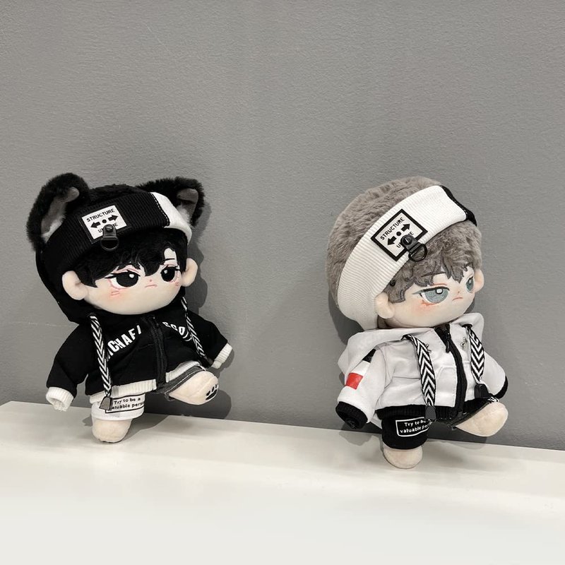 niannyyhouse 20cm Plush Doll Clothes Loose Black and White Suit Headwear Hoodie Pants Glasses Shoes Doll Dressup (Black, 20cm)