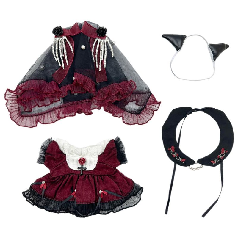 niannyyhouse 20cm Plush Doll Clothes Pearl Veil Dress Headdress Collar Dark Rose Outfit 8in Dolls Dress Up Accessories (Red)