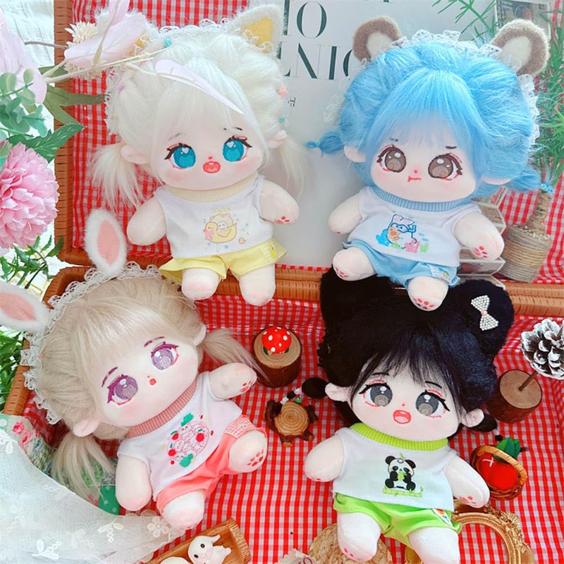 niannyyhouse 20cm Plush Doll Clothes Short Vest T-Shirt Pants 8in Soft Stuffed Plush Toy Dress Up Accessories (Blue)