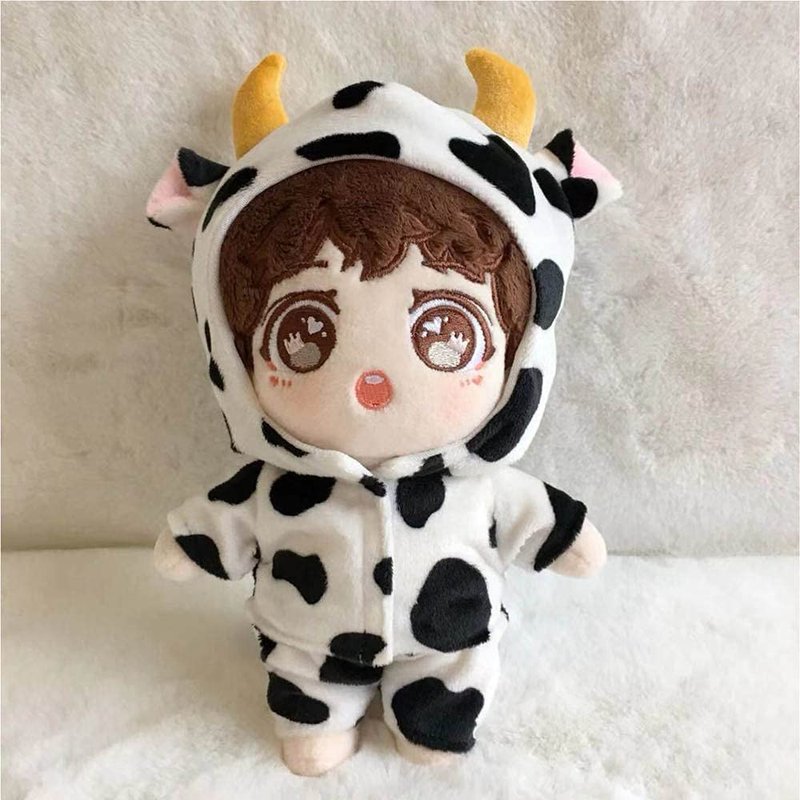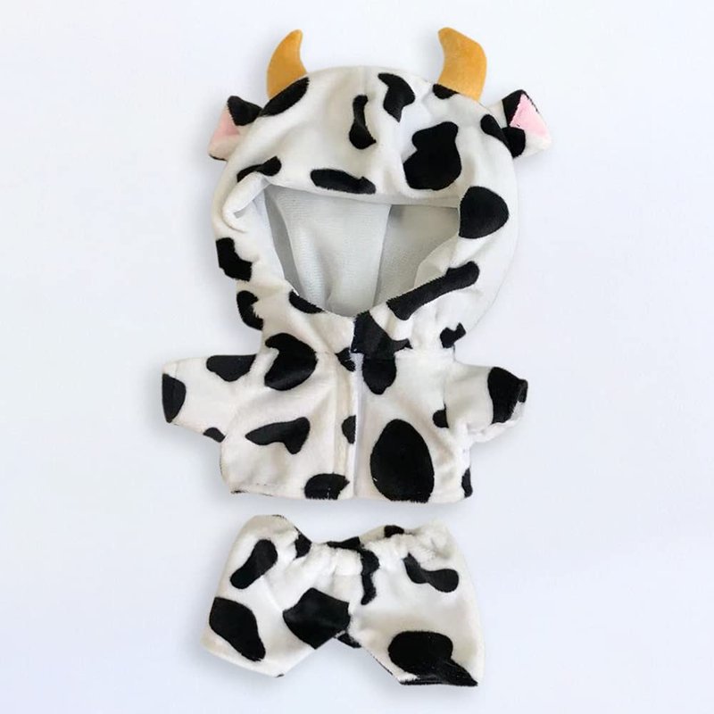 niannyyhouse 6in/15cm Plush Doll Clothes Coat + Shorts 2-Piece Set Cow Clothes Black and White Sweater Pajamas (15cm)