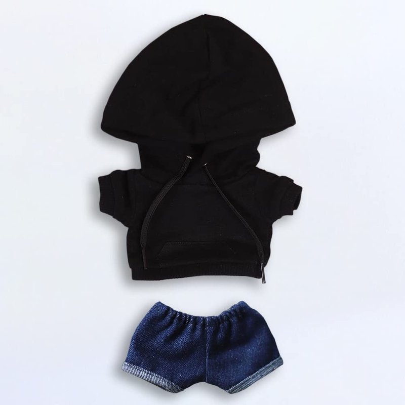 niannyyhouse Black Hoodies with Pocket Dark Blue Jeans 7.8in(20cm) Plush Humanoid Stuffed Doll Clothes (Black)