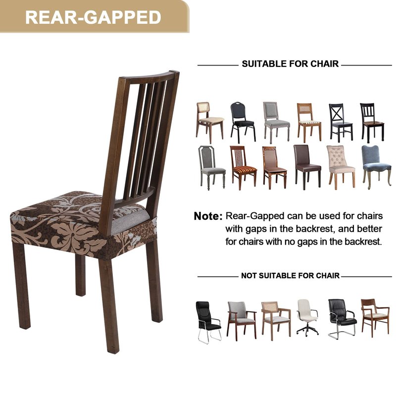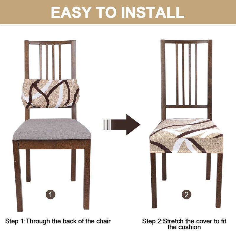 - 🪑 QUICK INSTALLATION:Our dining room chair cover adopts the design of rear seam notch, no need to use tools or remove the seat, and they don't require any ties, just slip over the back and then stretch over the seat. Takes only a few seconds to take off and put on. The elastic edge can firmly fix the chair cover in place, it's easy and time-saving to dress up your perfect chair! Warm Tips: NOT Fit for the chair with arms.