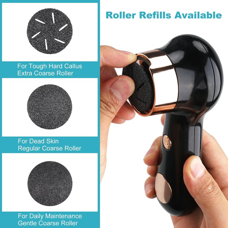 - 【Comprehensive Foot Care】This set includes 1 fine roller head, 1 regular roller head, and 1 coarse roller head. Choose the appropriate grinding head based on your skin's condition and restore your feet to their delicate, smooth state. No need to spend extra money on other accessories or visit a pedicure salon. This wonderful electric callus remover for feet meets all your needs.
