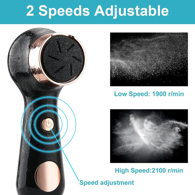 【2 Adjustable Modes】electric callus file features 2-speed settings: 1900x/min at low speed for gentle exfoliation on hands and delicate skin, and 2100x/min at high speed for stubborn thick calluses and dead skin. Perfect for all areas requiring different levels of care.