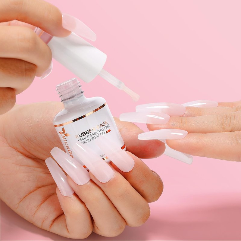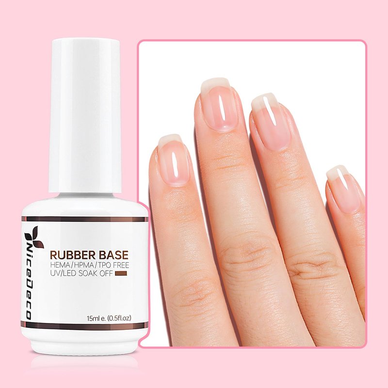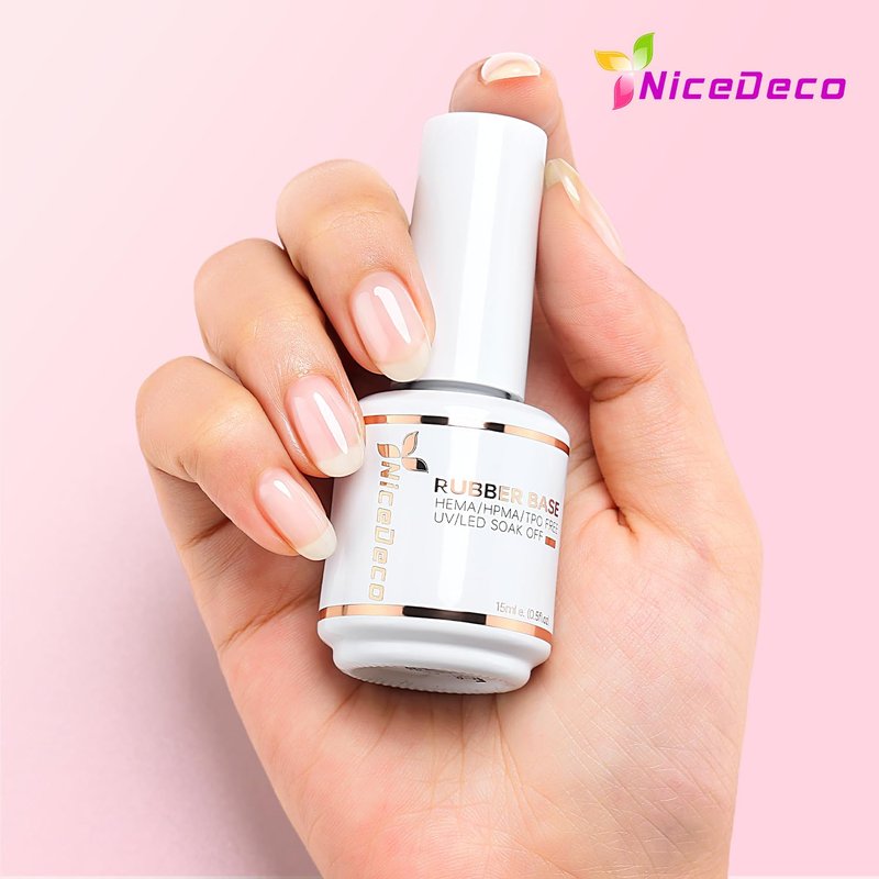- 4-in-1 Rubber Base: Nicedeco Rubber Base gel nail polish is a multi-functional nail product that can be used as a base coat, foundation gel, nail repair and nail strengthen gel. The thick consistency of our rubber base gel makes it perfect for protecting and strengthening natural nails. Ideal for irregular, thin, and brittle nails.