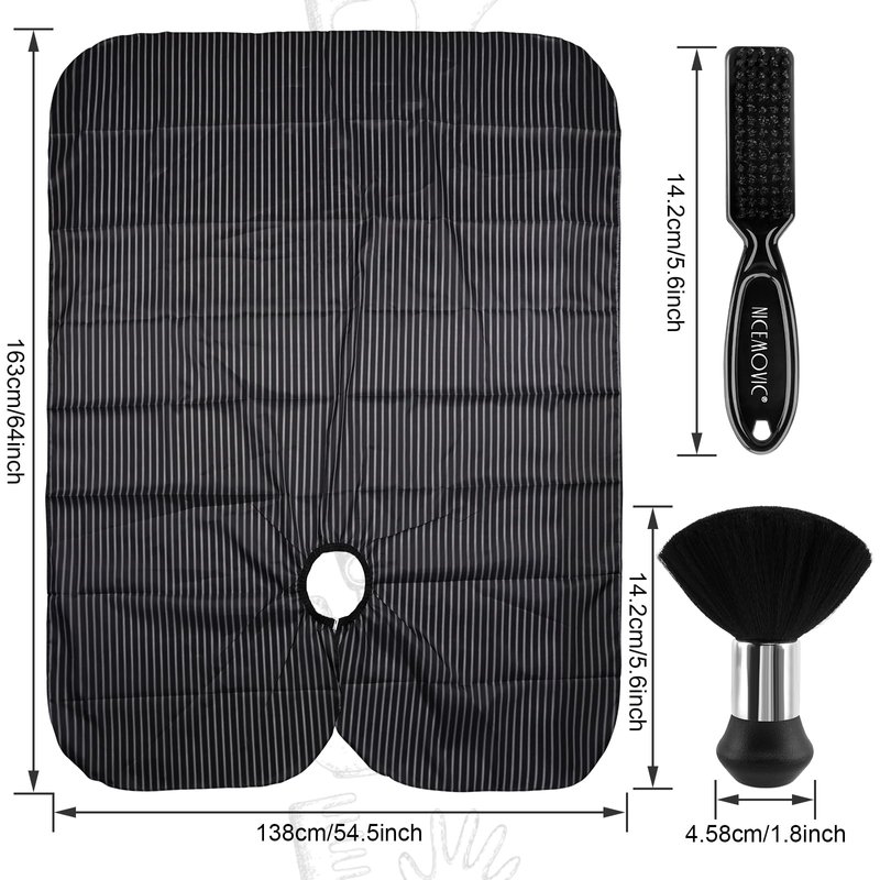NICEMOVIC Hair Cutting Barber Cape with Neck Duster Brush and Barber Brush, Professional Barber Accessories Cleaning Supplies for Salon Haircut Styling (Black Stripe)