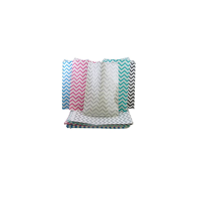 N'icePackaging 50 Qty 6" x 9" Mixed Chevron Flat Plain Paper Gift Bags or Patterned Decorative Bags for candy, cookies, merchandise, pens, Party favors, showers, holidays, events and gifts